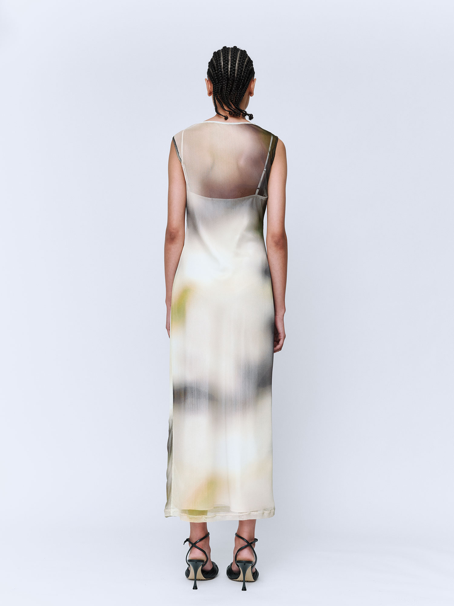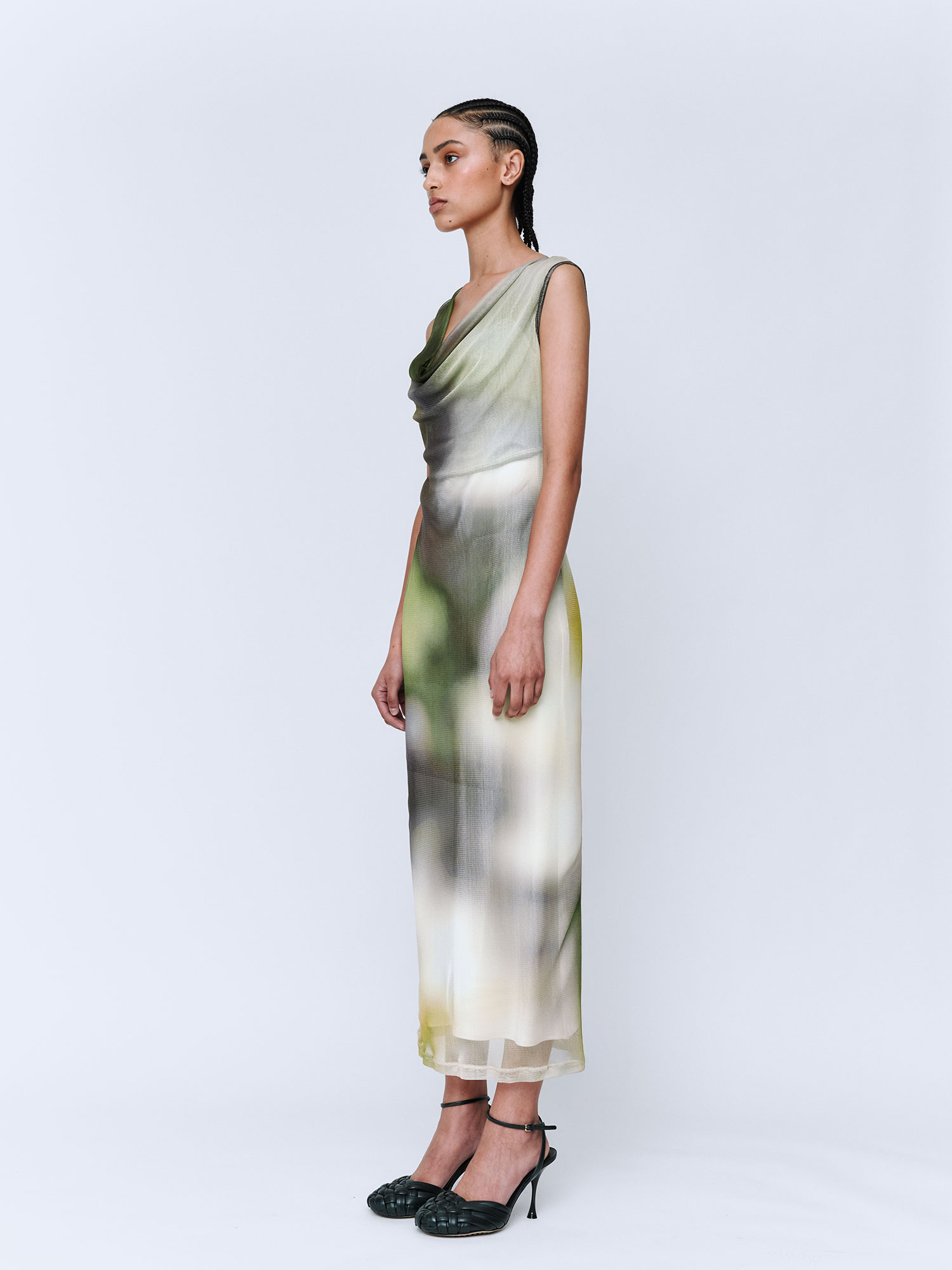 Cowl Silk Mesh Maxi Dress Acid Forest