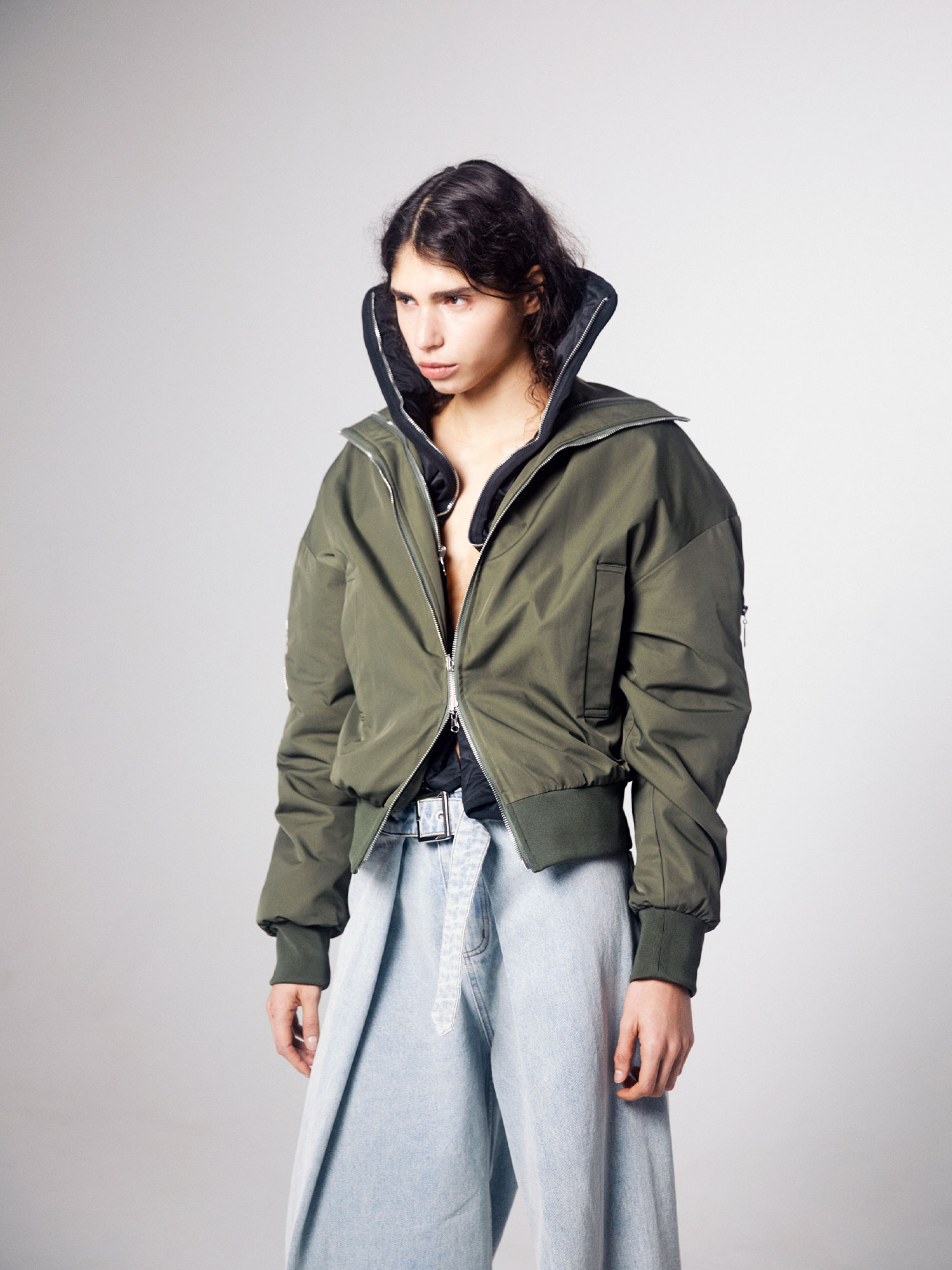 Quilted Bomber Jacket Khaki